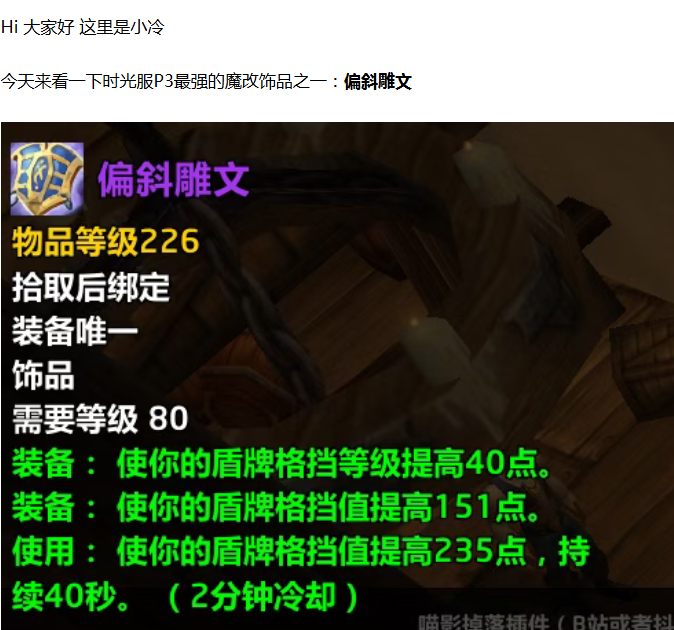 【魔兽世界】时光服P3最强魔改饰品!这个职业带到P8都不用换