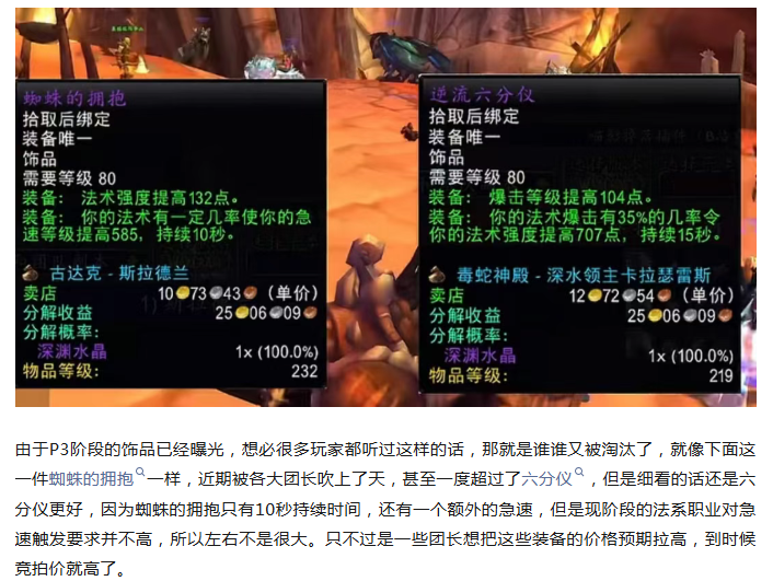 魔兽世界:千万别被忽悠了,这一件P3饰品被团长吹上天了