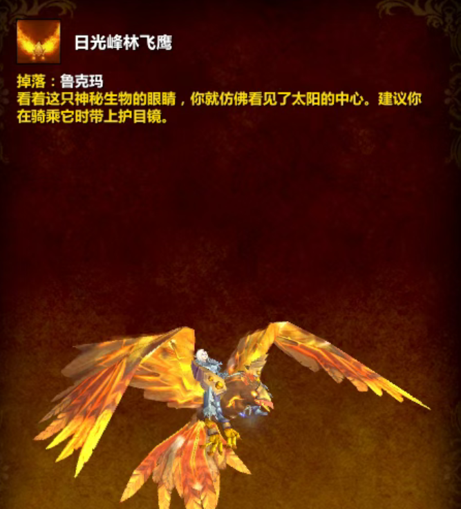 今天给大家带来一只外观极具辨识度的稀有坐骑:日光峰林飞鹰。