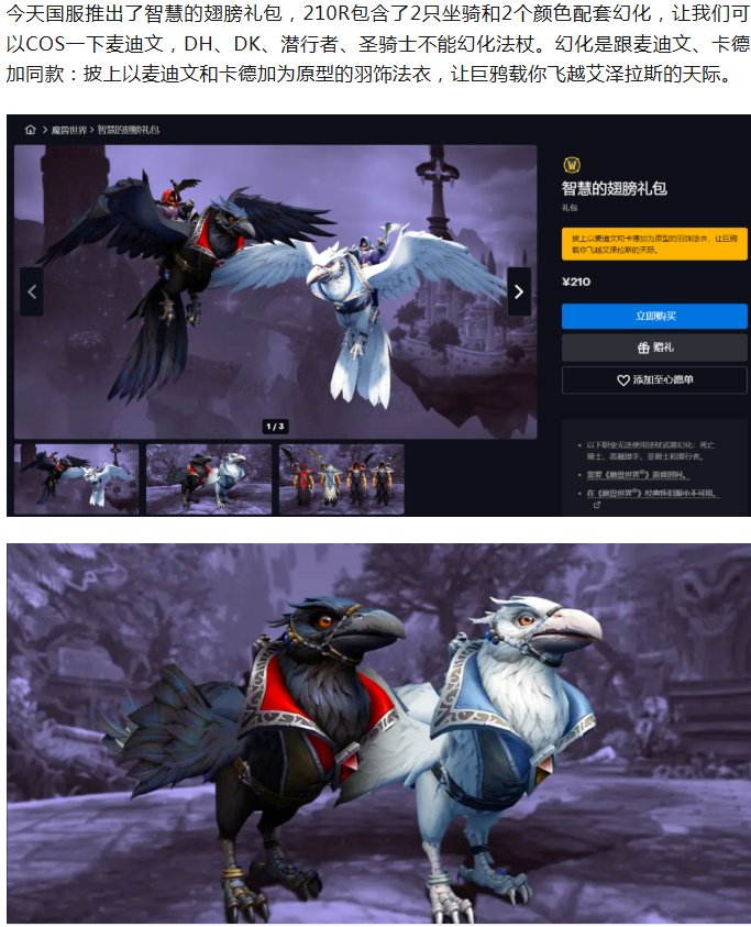 【魔兽世界】正式服新礼包2个坐骑2个颜色幻化套