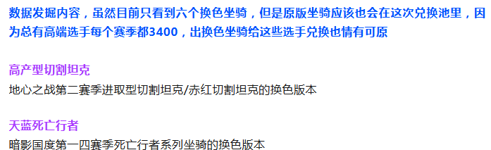 3400分赛季坐骑返场第一轮兑换池预览,新颜色六只