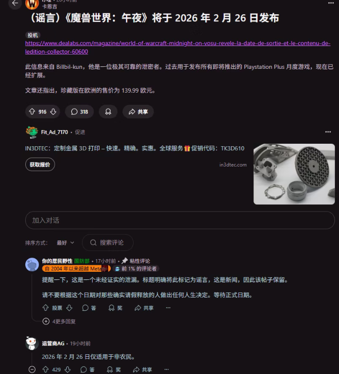 2、社区反应:在 Reddit 等社区中,玩家普遍把这类信息标记为“谣言/未验证泄露”,并提醒其他玩家不要据此做出重大决定(比如请假、刷钱或大额预购)。社区讨论同时强调——除非官方发布,否则一切以暴雪公告为准。