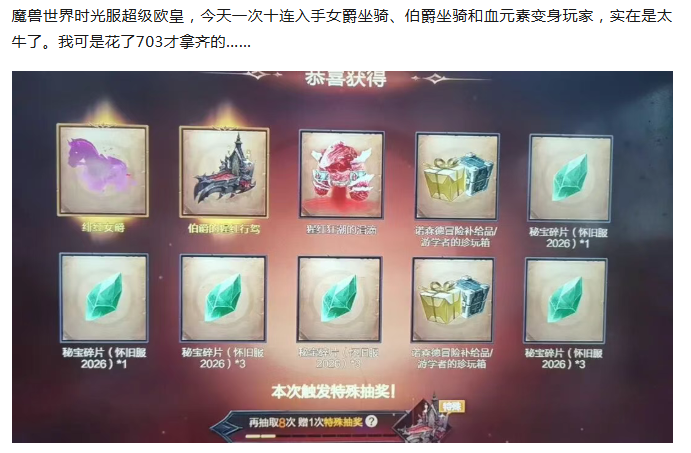 魔兽无敌欧皇,今天一次十连入手全部奖励!
