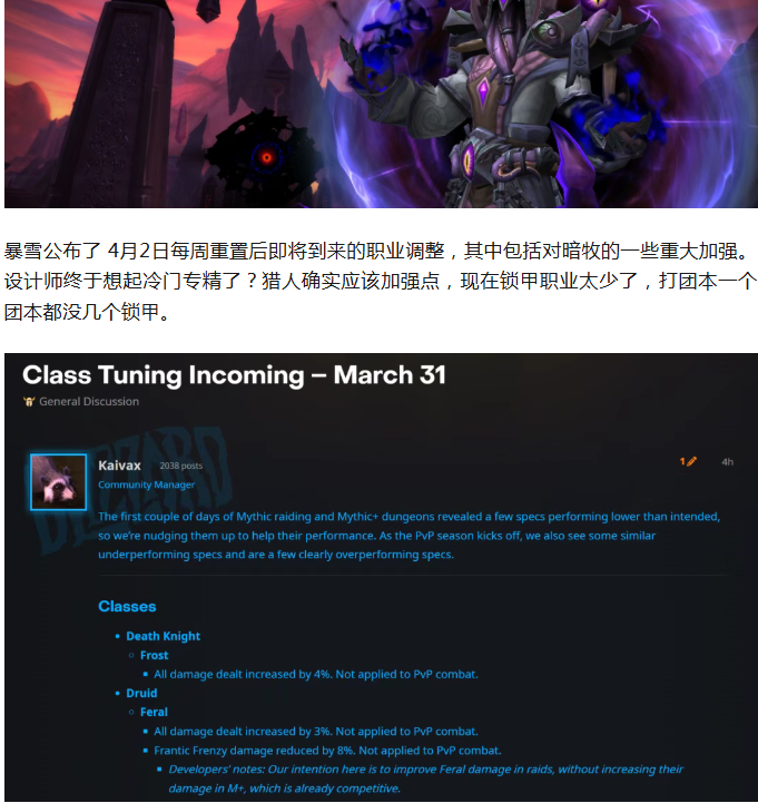 魔兽:4月2日到来的职业调整!双系猎人加强!多个冷门专精加强!