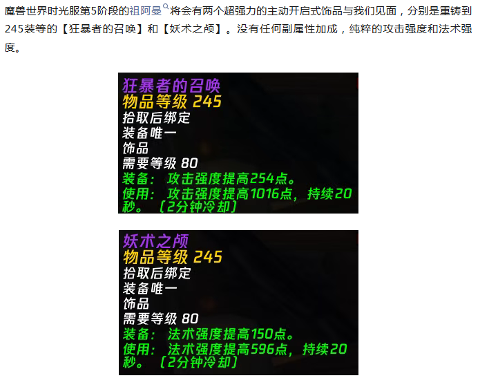 魔兽时光服:两个超强力的主动饰品即将加入,纯粹的数值