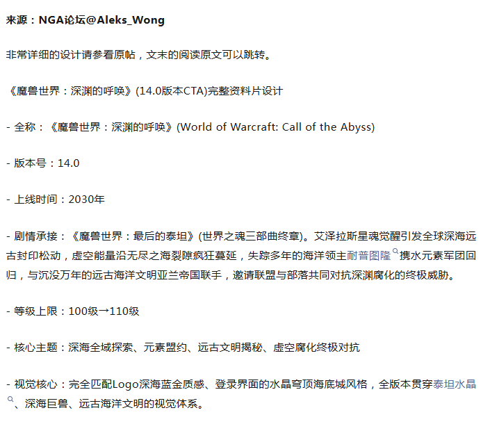玩家自制《魔兽世界:深渊的呼唤》(14.0版本CTA)完整资料片设计