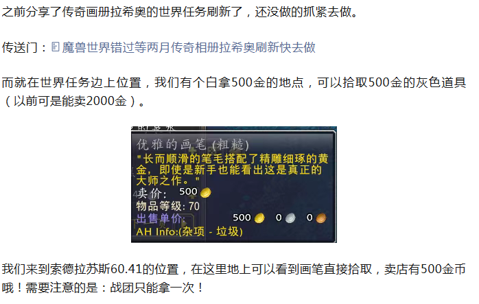 魔兽世界白拿500金币路过这里记得顺路去拿