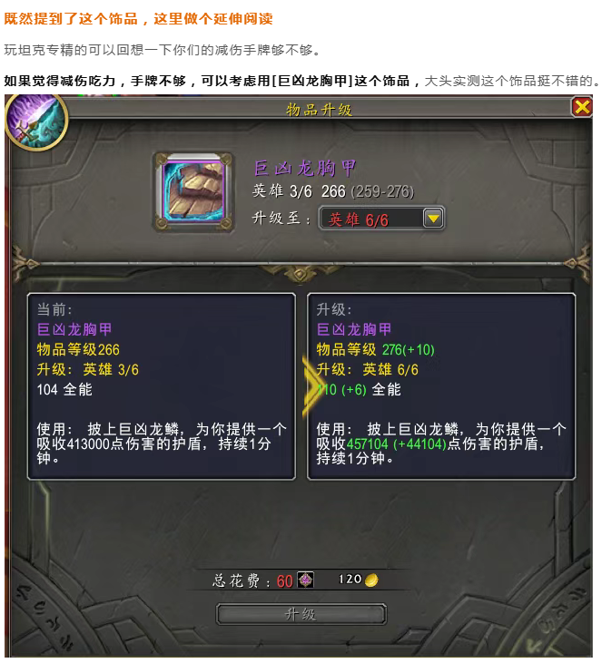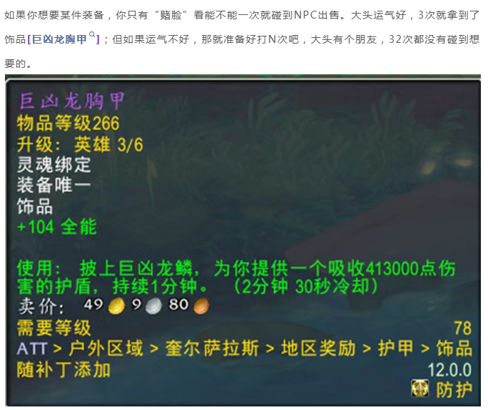 魔兽世界:地下堡商人出售装备纯随机;你的坦克缺减伤吗?如果缺就蹲这个饰品