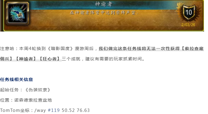 魔兽世界:这两天神谕者/狂心者任务线做完有三个成就,但有个暗坑当心别踩