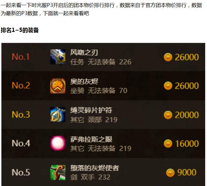 【魔兽世界】时光服P3团本物价排行!凤凰仅排第二,排名第一的道具令人意外