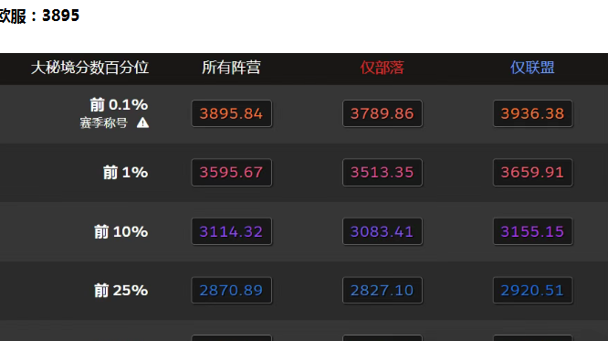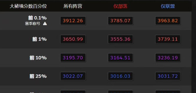一起来看一下本赛季的大秘境分数线,国服已经接近4000分了