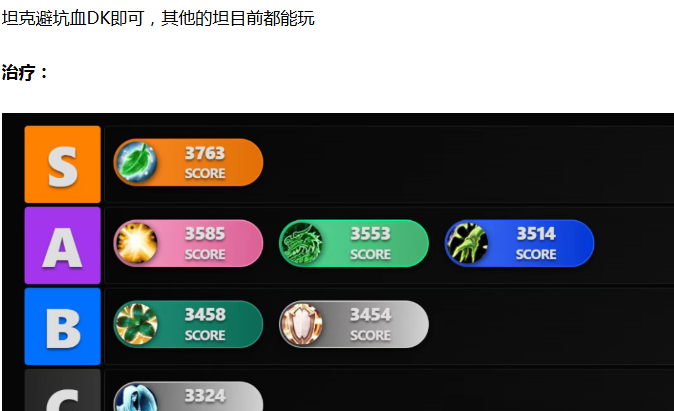 治疗优先选择奶德,其次避坑神牧,其他的治疗都有发挥的空间
