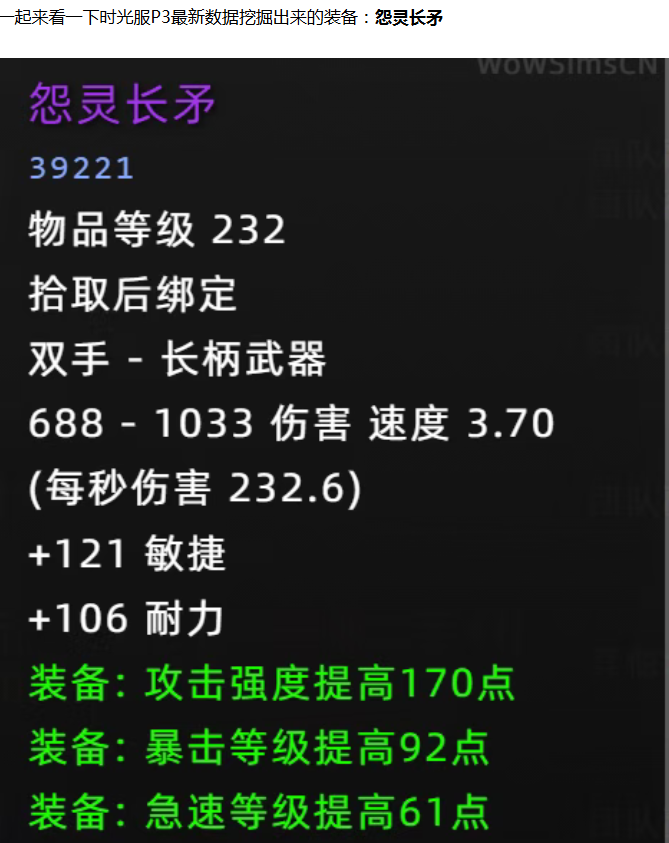 【魔兽世界】时光服P3新增1个超模武器!橙锤又要被紫装吊打了