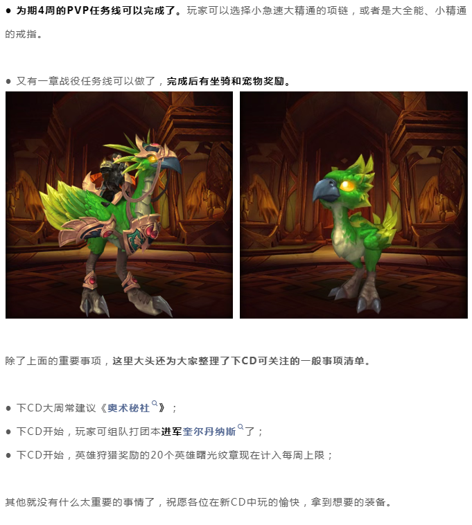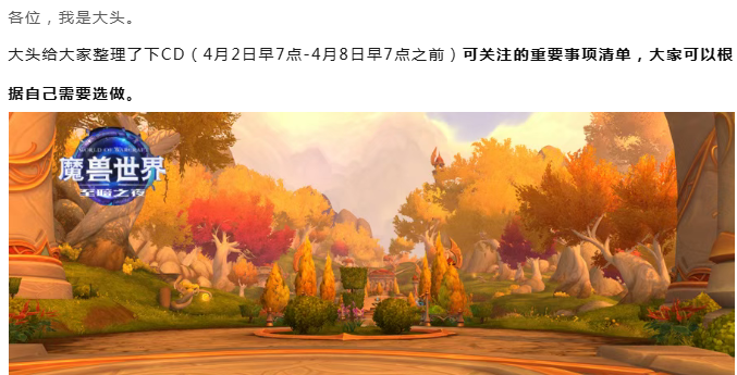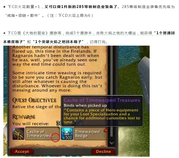 魔兽世界:下CD重要事项清单,两次转化充能、火花总量为6、CTM漫游周2箱子、新增战役主线