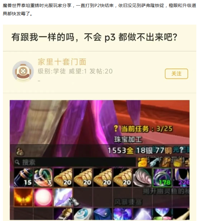 魔兽时光服玩家吐槽:P2快结束了,橙锤都没做出来!