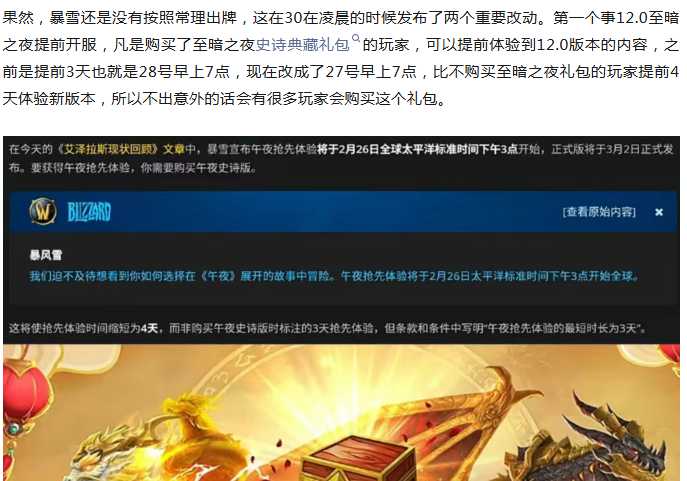 魔兽世界:暴雪连夜紧急宣布,12.0至暗之夜提前开服