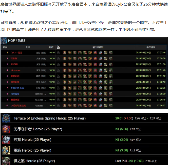 魔兽怀旧服:新团本刚开26分钟就跳首杀!这速度快得离谱