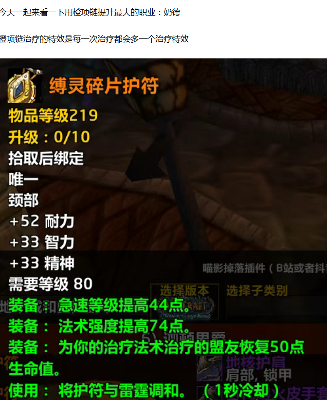 【魔兽世界】时光服橙项链对这个职业有300法强收益!不升级都能用到版本结束