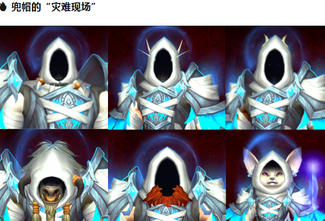 套装中的头部主打外观,是一个类似灵魂医者风格的兜帽,本该营造神秘氛围。