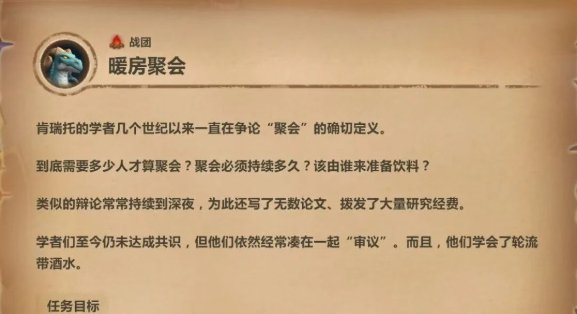 在一名玩家的家园中,举办或参加一次至少5人(含自己)的聚会即可完成任务。