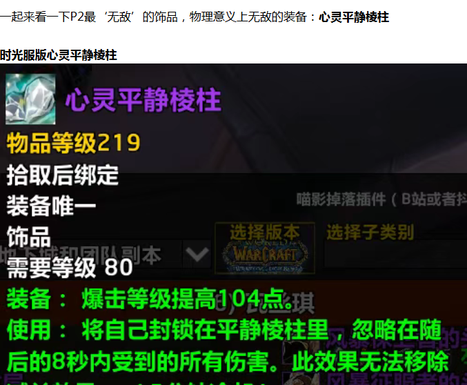 【魔兽世界】时光服P2最‘无敌’装备,魔兽史上最有战略价值的饰品
