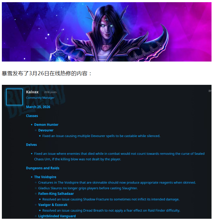 魔兽世界:3月26日在线热修!