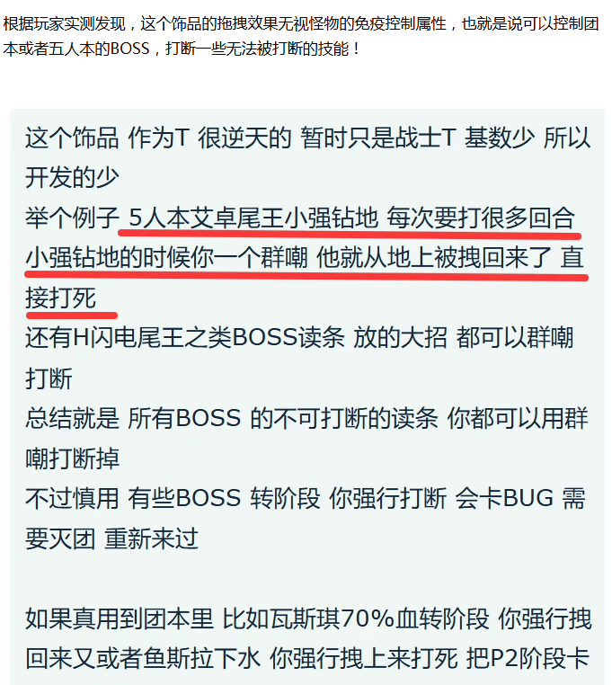 其中最有用的就是,这个饰品竟然可以打断蜘蛛本尾王的小强钻地,小强钻地直接就可以拖拽出来,就不用转阶段了,确实有点太变态了,直接解决了无数玩家的痛点!