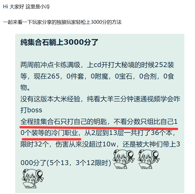 【魔兽世界】12.0 独狼玩家也能轻松大秘3000分!只要学会这个小技巧就行了