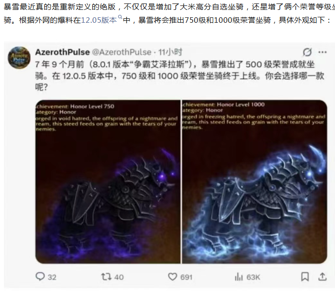 魔兽世界:新荣誉等级坐骑曝光,外观真的太拉风了