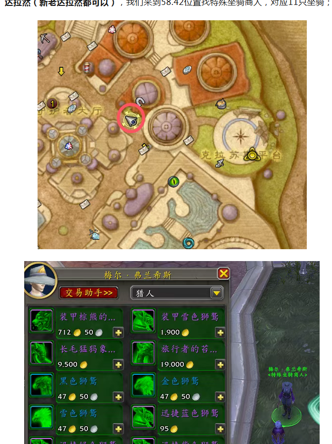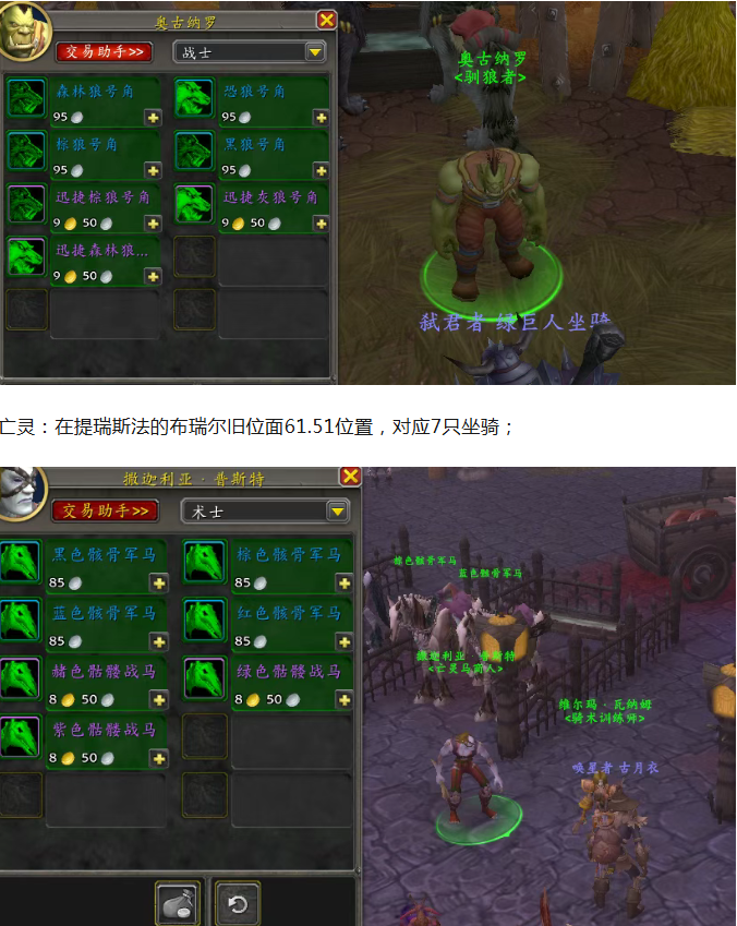 巨魔:在杜隆塔尔森金村55.75,对应6只坐骑;