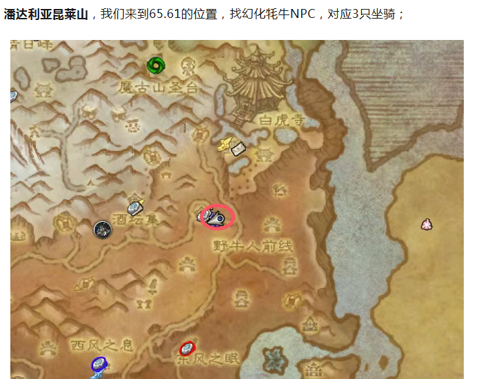 牛头人:在莫高雷57.58位置,对应6只坐骑;