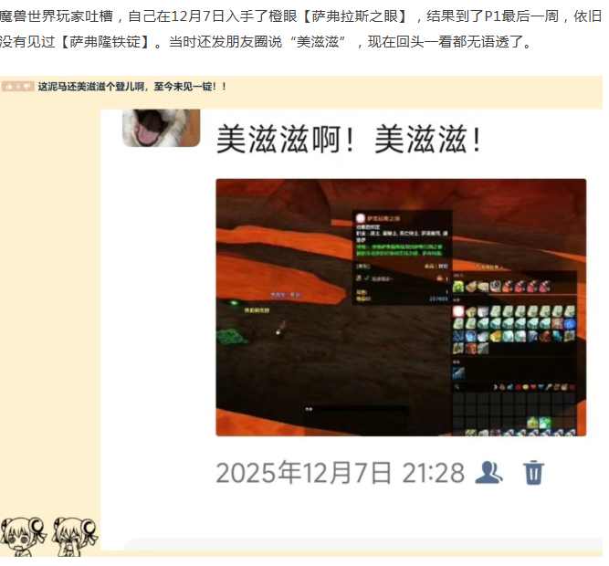 时光服玩家入手橙眼7CD至今未做出橙锤!铁锭价格都上天了