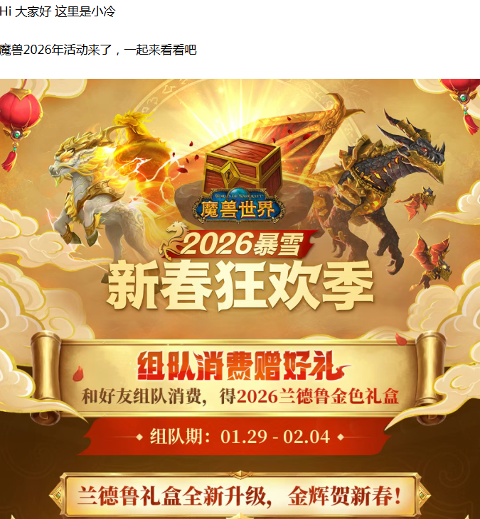 【魔兽世界】2026新春活动出炉!正式服确定加入金色大表哥!