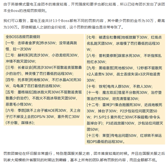 怀旧服团长发布最新团本罚款细则,犯错一次30-100万