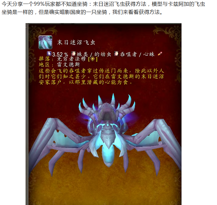 魔兽世界99%玩家不知道的末日迷沼飞虫坐骑获得方法