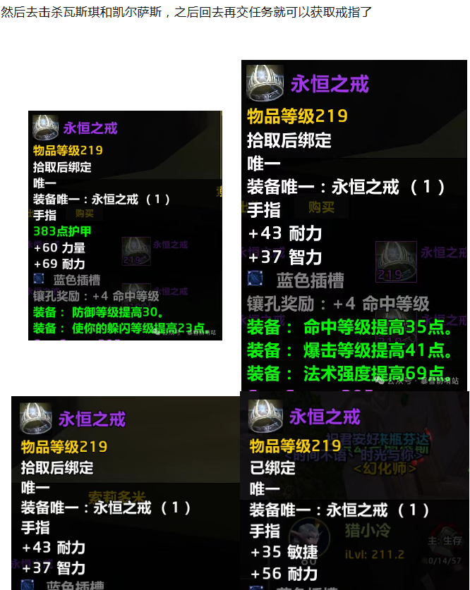需要注意的是我们要做的任务不是游览时光之穴,不少玩家坐着龙下来以为是这个任务还在一直做,这个任务是之前版本的开门任务,不是我们的戒指任务哦!我们做完永恒水瓶任务后直接去找NPC索莉多米交任务就可以从他那里接到后续给戒指的任务了,戒指拿错了也没关系,直接找NPC买其他属性的戒指就行了。