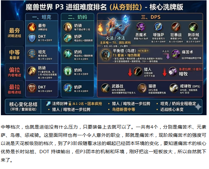 魔兽世界:时光服P3进组难度排名出炉,从夯到拉一共5个等级