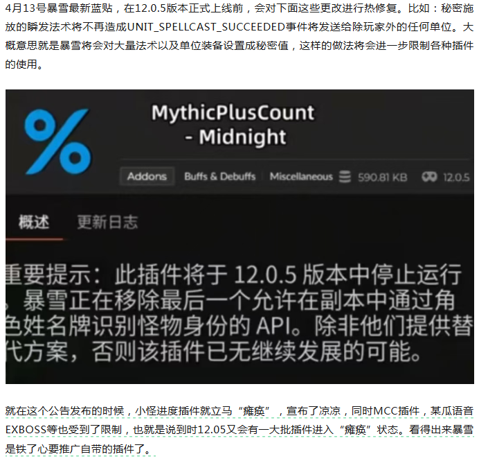 魔兽世界:4月13号暴雪最新蓝贴,多个插件宣布彻底凉凉