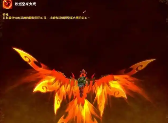 你有没有见过那种祥云图案翩然飞舞、鸟翼轻展间带出一道流光溢彩的画面?我跟你讲,这次上线的新坐骑之一皇家炽焰火鹰,就是这种梦幻级别的存在。据说设计灵感来源于中国传统文化,还专门找苏州刺绣艺术博物馆合作完成。这架势一摆出来,那感觉就像是给你端上一盘满汉全席,每道菜还都标注了中国特色。整个外观不仅比之前的堕落火鹰和纯血火鹰更精致,而且双翼上的祥云图案特别有意思,看得出来是真的花心思在做。想想也是,中国玩家贡献那么多流水,《魔兽世界》的策划不给点特殊待遇怎么行?