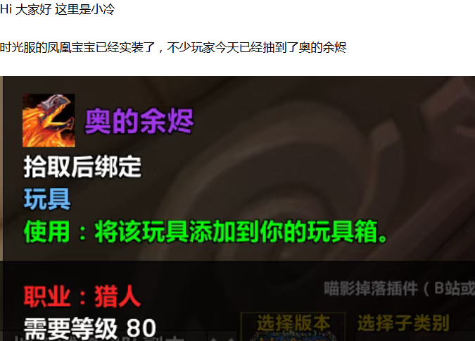 【魔兽世界】时光服猎人凤凰宝宝实装!特效太华丽,就是近战的天塌了