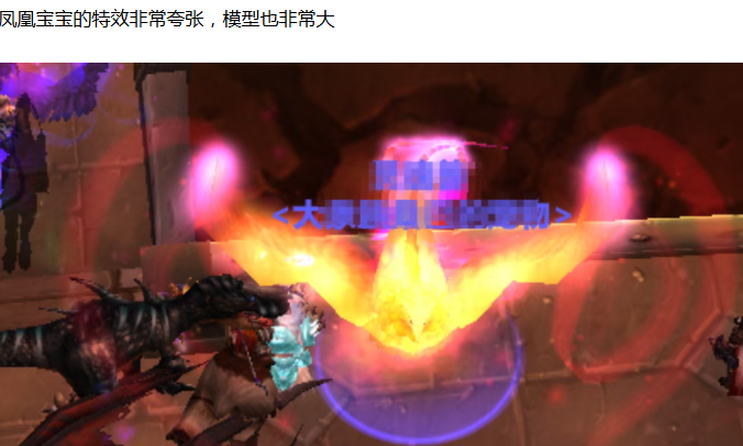 通过对比就会发现隔壁的魔暴龙都感觉是小宝宝了,要是一个团多几个猎人用这个玩具,近战直接啥地板都看不到了,近战要骂人了,但是猎人玩家应该会很爽,毕竟凤凰宝宝特效拉风,存在感拉满~