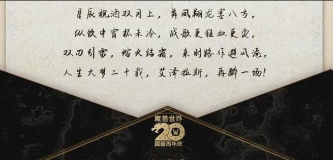 魔兽世界官方运营团队本月15日即将举行的国服20周年庆发布会,目前会场意外曝光确认了熊猫人怀旧服海报,这也算是再次确认了,即将到来的发布会,必定会就此版本进行展开发布。