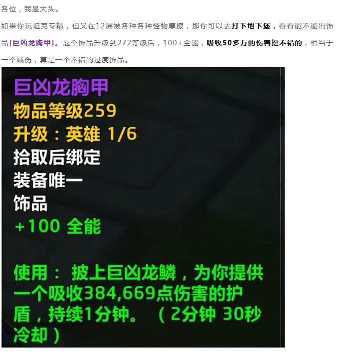 魔兽世界:坦克被12层摩擦?去地下堡刷这个饰品,272等级吸收50万多伤害