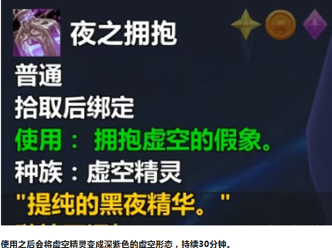 虚空精灵专属福利!夜之拥抱药水,30分钟紫色虚空外观!