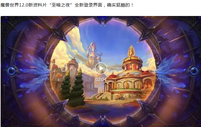 酷毙了!魔兽世界新资料片“至暗之夜”全新登录界面曝光