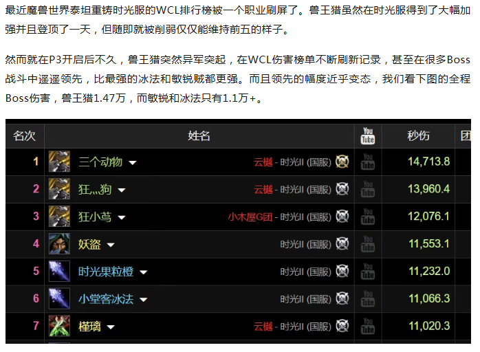 时光服惊现重大BUG!一职业伤害提升50%