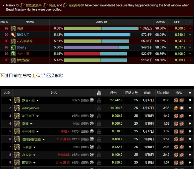 魔兽时光服:职业排行榜最新改动!大量玩家的记录无效了