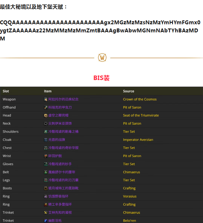 12.0狂徒贼全解析丨天赋、BIS装、附魔、属性优先级、输出循环!
