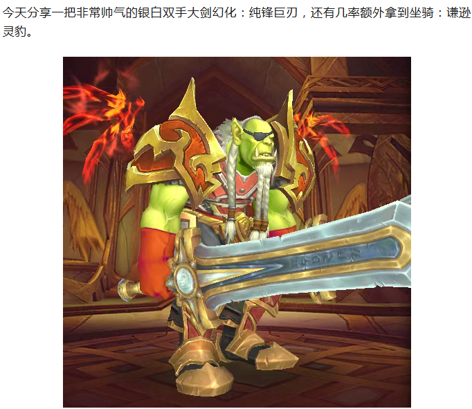 魔兽世界超帅银白大剑幻化还有一只坐骑可以拿