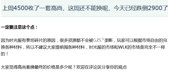 时光服这两天物价突然大跳水了,之前高达4500+金币的高尚套牌已夭折到3000金币了